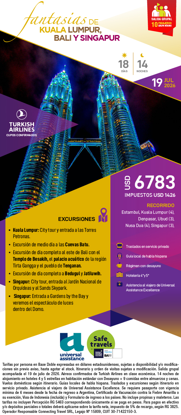 Vuelos confirmados por Turkish Airlines sujetos a modificación y reconfirmación por la compañía aérea.