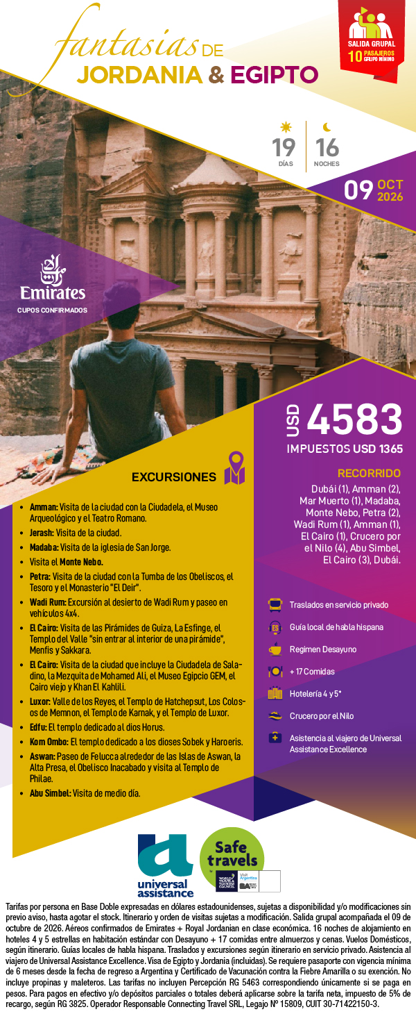 • Fechas, itinerarios y precios pueden cambiar sin aviso previo. El proveedor de circuitos se reserva el derecho a realizar cambios sobre el itinerario final por motivos operativos.